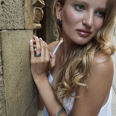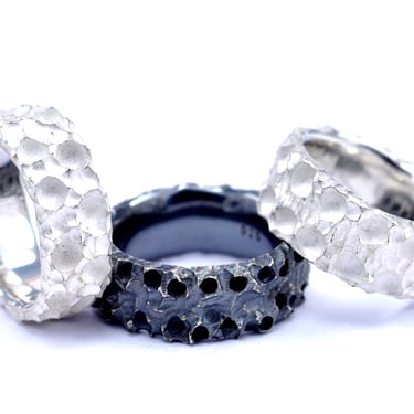 Todas las piezas de esta colección tienen una superficie irregular y muy llamativa.